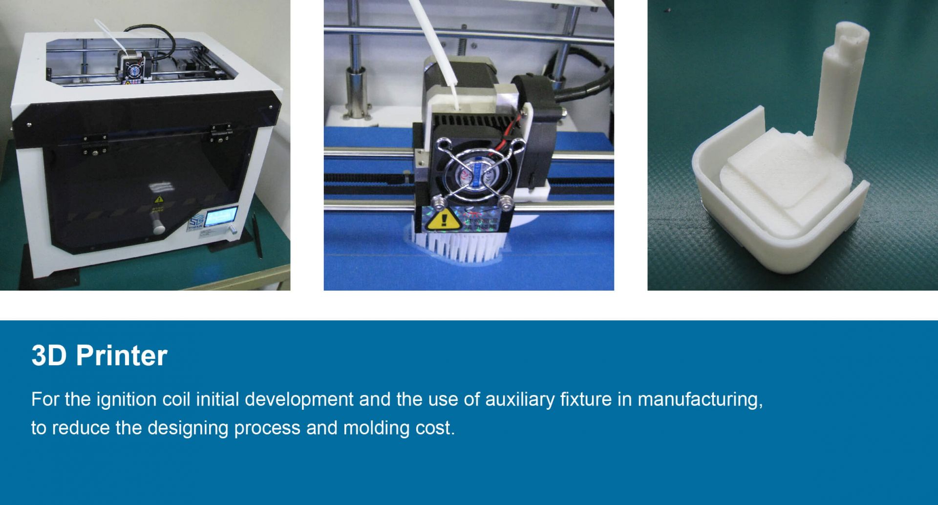 Für die anfängliche Entwicklung der Zündspule und die Verwendung einer Hilfsvorrichtung in der Fertigung kann der 3D-Drucker den Designprozess und die Formkosten reduzieren.