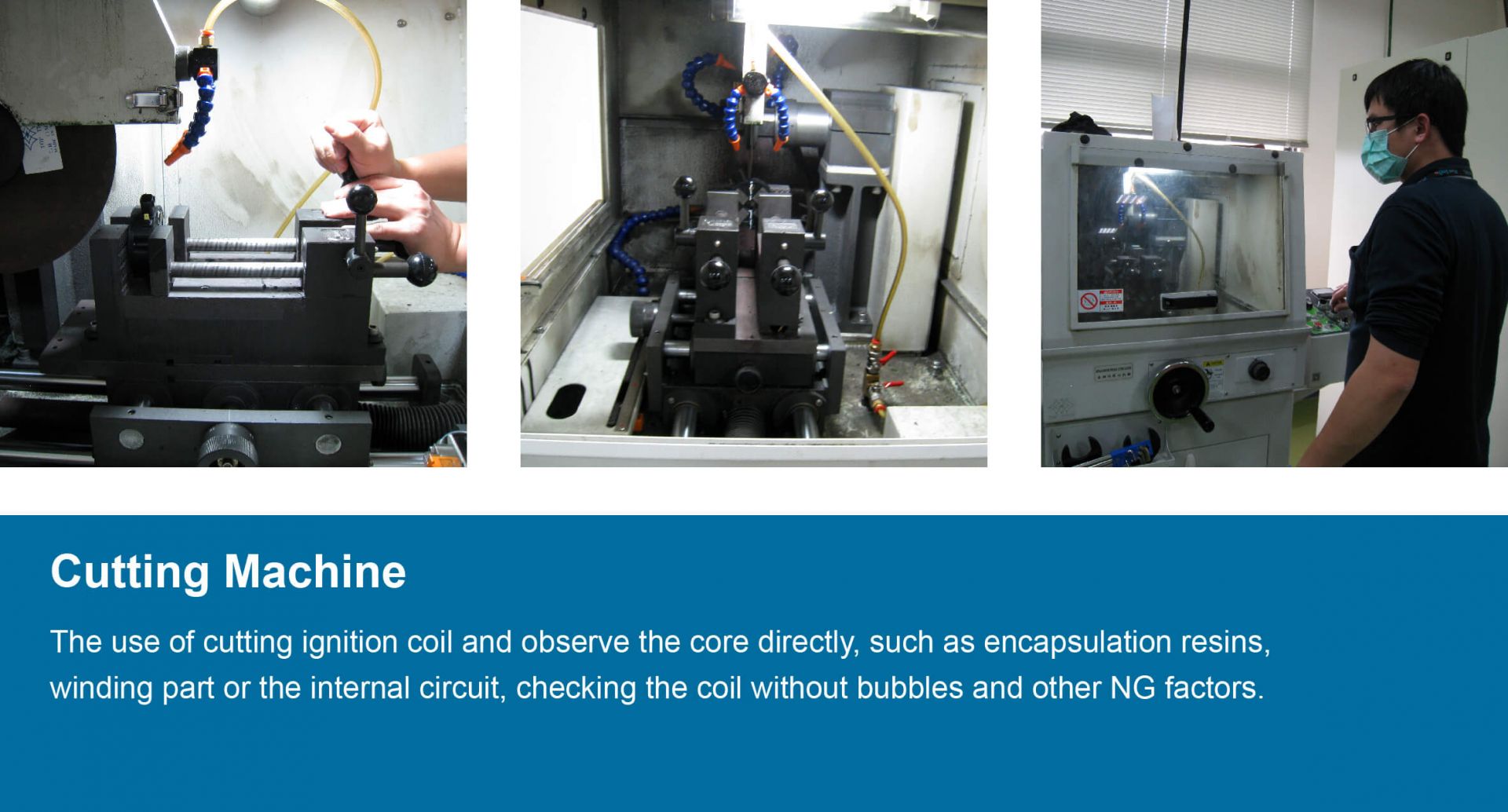 Die Verwendung einer Schneidemaschine ermöglicht es uns, den Zündspulenkern direkt zu beobachten, wie zum Beispiel Vergussmassen, Wickelteil oder die interne Schaltung. Überprüfen Sie die Spule auf eventuelle Blasen oder andere Fehler.