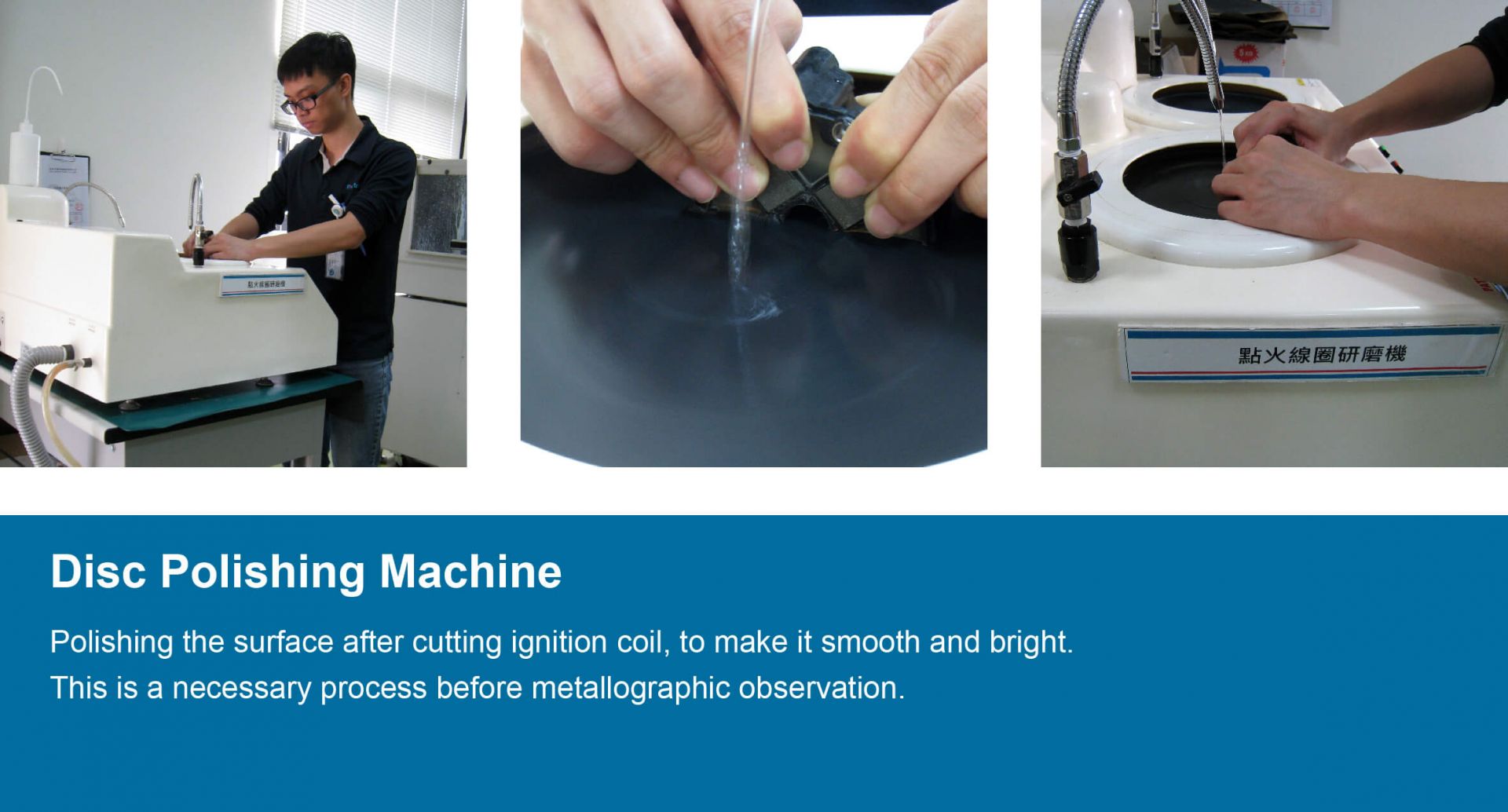 Die Poliermaschine für Scheiben wird verwendet, um die Oberfläche nach dem Schneiden der Zündspule zu polieren, um sie glatt und glänzend zu machen. Dies ist ein notwendiger Prozess vor der metallographischen Beobachtung.