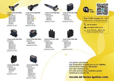 Located in Taiwan since 1968, Asia Traffic Supply Co., Ltd. has been a leading ignition coil manufacturer in automotive and motorcycle parts industry. Their main products, including Toyota Celica 90919-02238 ignition Coil, Ignition Coils, Motorcycle Ignition Coils, Electric Horns, Ignition Modules, Spark Plug Cap, etc.