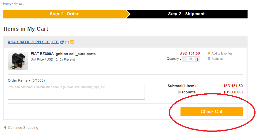 2. Step 1. 確認訂單數量並點選 "Check Out"