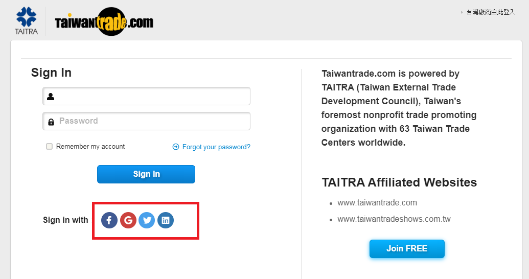 3. 您也許需要登入Facebook 或 Gmail 進行下一步 (Twitter 和 Linkedin 也可以登入)