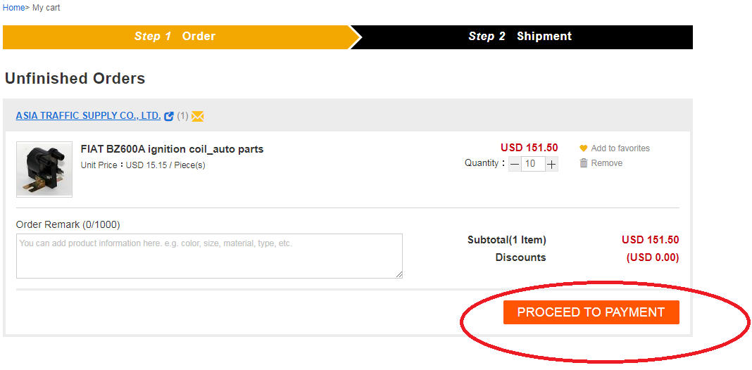 4. Step 1 成為 TAIWANTRADE 的會員後,您會進入訂單頁面,點選 "PROCEED TO PAYMENT"