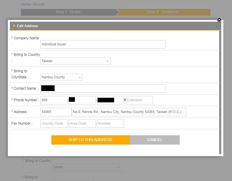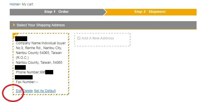 7. Step 2 Shipment 填寫完收件地址後