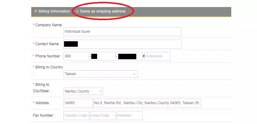 6. Step 2 Shipment 填寫資料完成,勾選 "Same as shipping address"